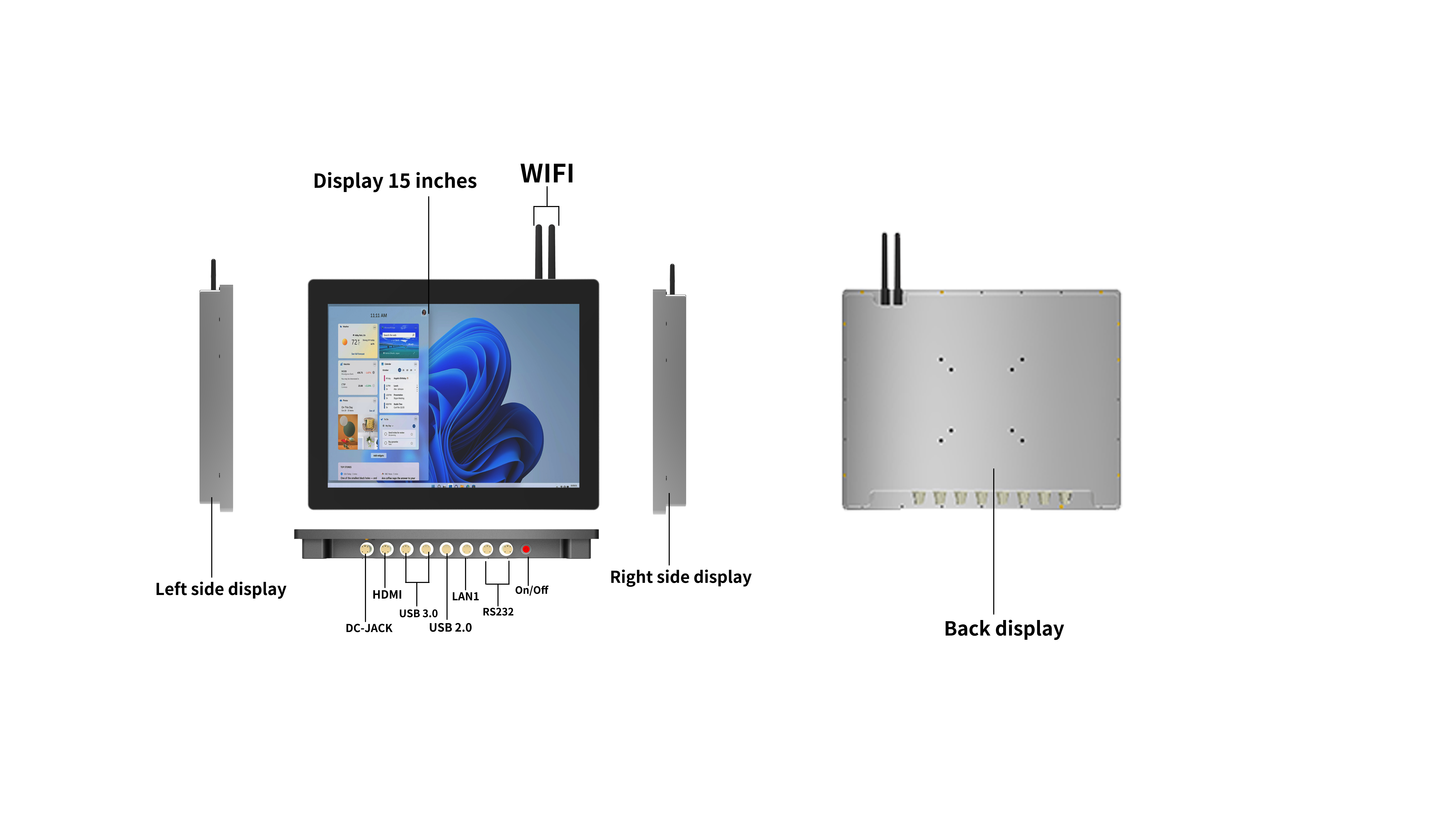 PC industrial à prova d 'água multi-sistema prático: várias CPUs (incluindo domésticas), tela HD de 15 polegadas, WiFi / Bluetooth estável. IP65 à prova d' água + resiliência de temperatura ampla (lida com cenas logísticas / industriais). Potência de 12V + alto-falantes opcionais confiável para operação entre indústrias.