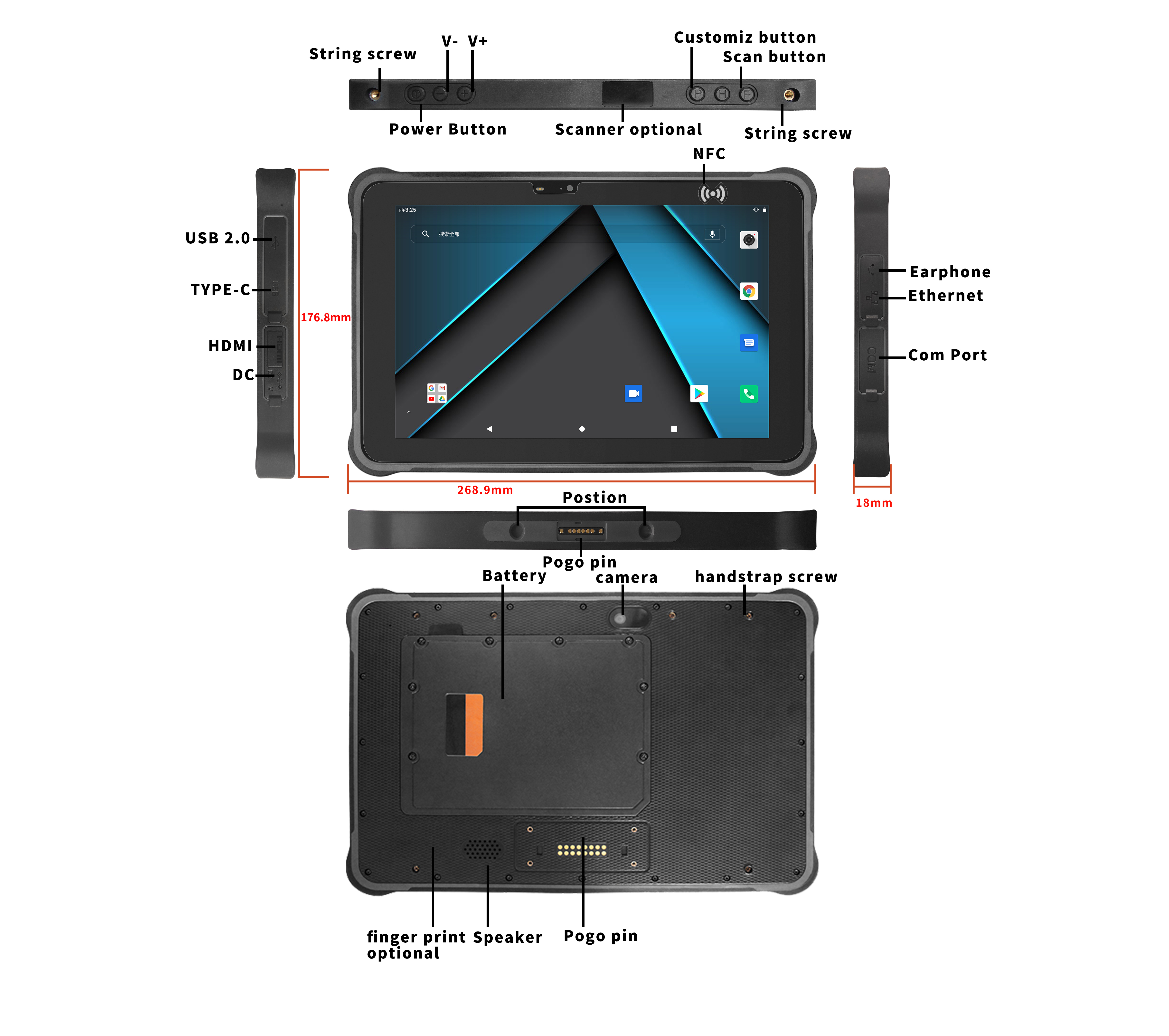 O ST11-A5 é um tablet robusto de 10,1 polegadas alimentado por MTK MT8788 processador octa-core (2,0 GHz), executando o sistema Android 11. Possui armazenamento escalável (4GB / 64GB, 6GB / 128GB ou 8GB / 256GB opcional), tela IPS 1200 × 1920 de 10,1 polegadas (base de 450nits, 700nits / 1000nits opções de alto brilho), câmeras frontais / traseiras de 5MP com flash, bateria dupla (12000mAh + 2400mAh) para uso de 24H, interfaces ricas (RJ45, HDMI para versão 8 + 256) e proteção IP65. Oferece resistência ultra-longa para operações de campo industrial